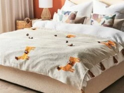 Katoenen Deken Lama Motief 130 X 180 Cm Beige En Oranje KHANDWA